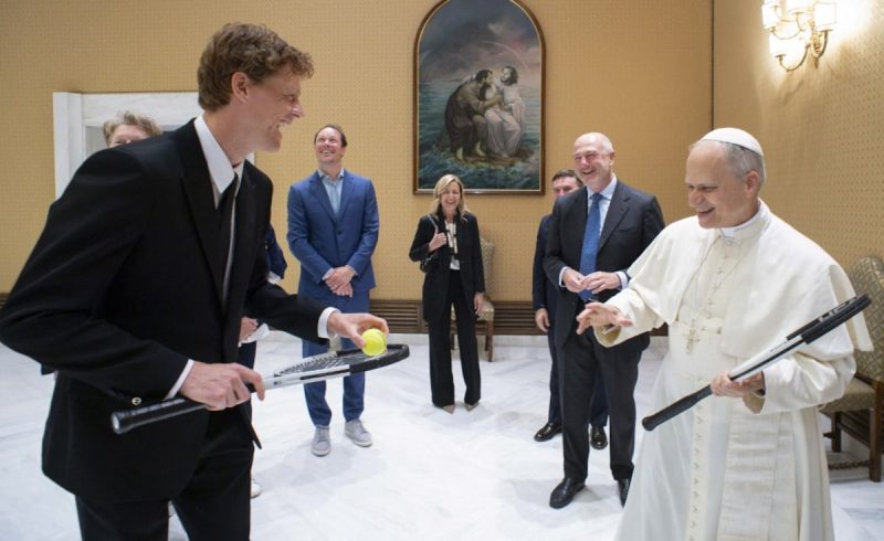 ওয়ার্ল্ড নং 1 জান্নিক সিনার টেনিস ফ্যান পোপ লিও xiv এর সাথে দেখা করেছেন, তাকে টেনিস র্যাকেট উপস্থাপন করেছেন